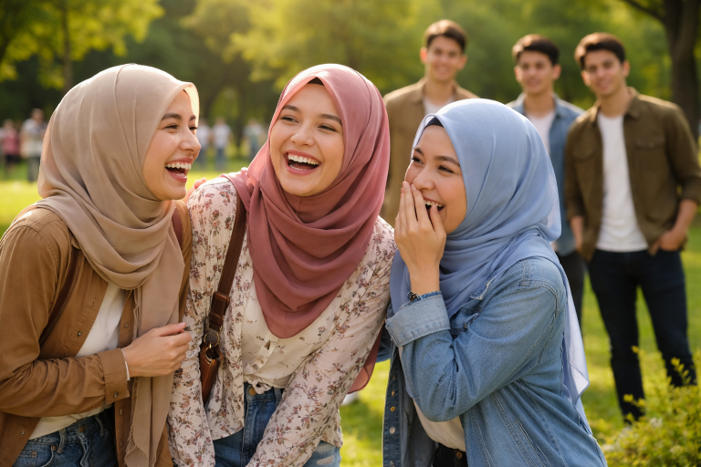 Muslimah juga disarankan untuk mengawal tawa dan tingkah laku agar sifat malu (iffah) terus terpelihara.