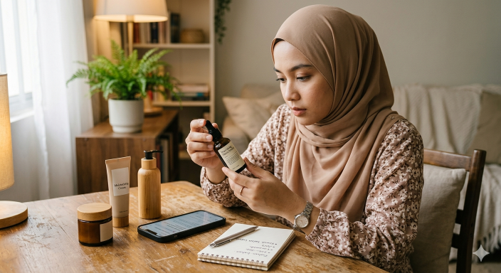 Selain itu, sebagai muslimah, pastikan produk yang digunakan tidak mengandungi bahan yang haram seperti alkohol yang tinggi atau ekstrak khinzir.