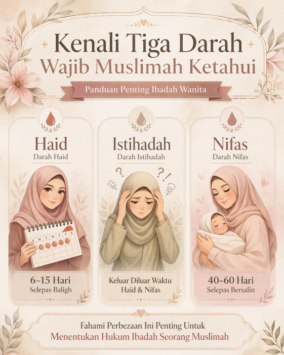 Memahami ketiga-tiga jenis darah ini penting bagi memastikan setiap Muslimah dapat melaksanakan ibadah dalam keadaan suci dan menepati hukum yang ditetapkan.-Muslimah